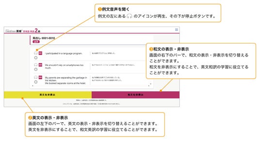 すべての見出し語には例文がついており、オンライン上でマスクリスニングに取り組めます。紙面右上の二次元コードからアクセスすることができます。