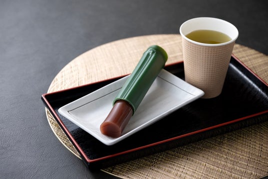 ・“竈門禰豆子”竹ようかんとお茶のセット 1,200円[カード1枚](京甘味処 なか井茶寮)