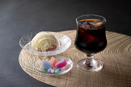 ・“宇髄天元”モンブラン(ドリンクセット) 1,500円[カード1枚](メイジ珈琲時館)