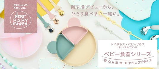 『dear BABY(ディアベビー)』は、見た目の愛らしさと機能性、安全性を両立したトイザらス・ベビーザらス オリジナルブランドです。赤ちゃんの成長に寄り添うベビー食器として、“食べる”をもっと楽しく、快適にし、毎日の食卓に“かわいい”と“安心”をプラスした商品シリーズです。