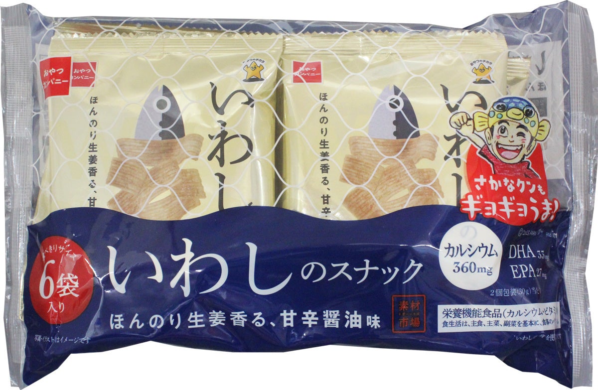 誰もが毎日の健康を意識するようになった今、“間食における健康志向”も高まっています。そんな健康志向ニーズに応えるため、間食らしいエンターテイメント性を残しながらもヘルシーさを両立した魚介のスナック菓子「素材市場」を開発。青魚をたっぷり生地に練り込んだ「素材市場いわしのスナック」「素材市場さばのスナック」、えび粉を生地に練り込み、アマニ油を使用した「素材市場えびのスナック」の3フレーバーを展開しています。そんな「素材市場えびのスナック」より、食べきりサイズが6袋入ったマルチパックタイプが期間限定で登場します。