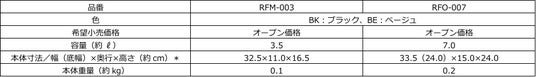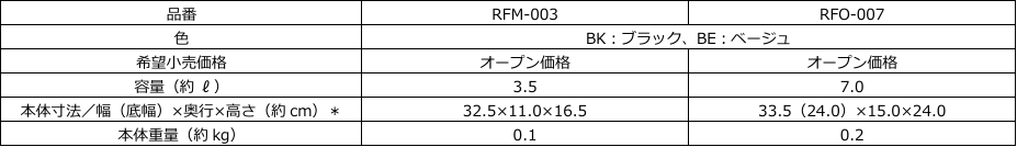 『保冷ショルダーバッグ(RFM-003/RFO-007)』 仕様一覧