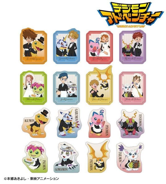 種類 :全8種(八神太一&アグモン、石田ヤマト&ガブモン、武之内空&ピヨモン、泉光子郎&テントモン、太刀川ミミ&パルモン、城戸丈&ゴマモン、高石タケル&パタモン、八神ヒカリ&テイルモン)