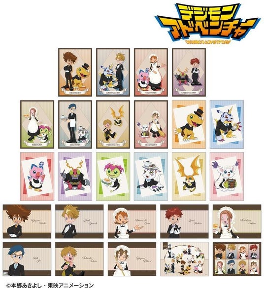 種類 :全9種(八神太一&アグモン、石田ヤマト&ガブモン、武之内空&ピヨモン、泉光子郎&テントモン、太刀川ミミ&パルモン、城戸丈&ゴマモン、高石タケル&パタモン、八神ヒカリ&テイルモン、集合)