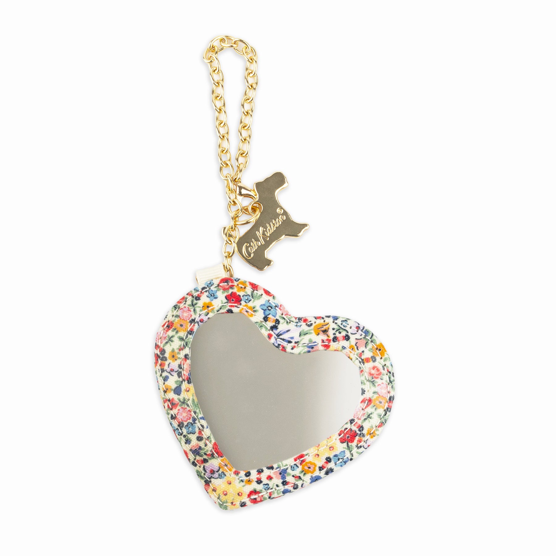 さらに、3月6日(金)より、表参道店にて10,000円(税込)以上お買い上げのお客様に、数量限定でハート型ミラーチャームをプレゼント。表参道店のオープンの際にノベルティとして登場したスタンリーのバッグチャームと同じ、Harmony Ditsyのアートを使ったハート型のミラーチャームは、Cath KidstonらしいPVCコットンのコーティング素材で、ゴールドのロゴ入り。スタンリーのチャームをお持ちの方は、ぜひ一緒にバッグにつけてください。