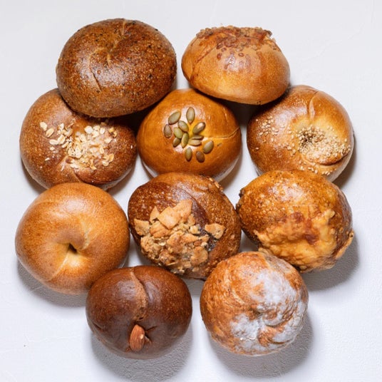 イーストを使用した、“ふかふか”と柔らかな食感。バラエティ豊かなフレーバーで展開。たっぷり具を挟むベーグルサンドにしてもgoodです。自家製酵母を使用。低温長時間発酵で、ほどよく歯ごたえのある“もちもち”の食感に仕上げたベーグルです。ホシノ天然酵母を使用。低温で熟成させるように発酵させたベーグル。みっちり、“むぎゅっ”と詰まった食感が特徴です。