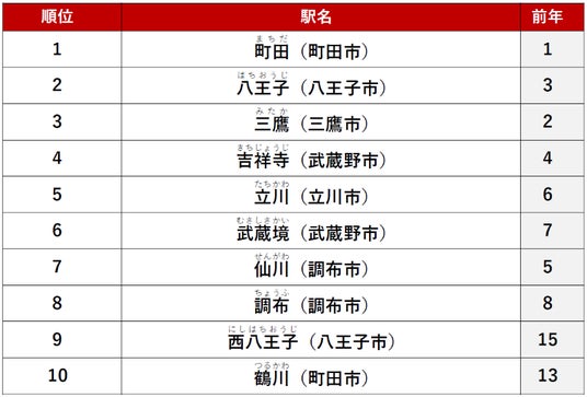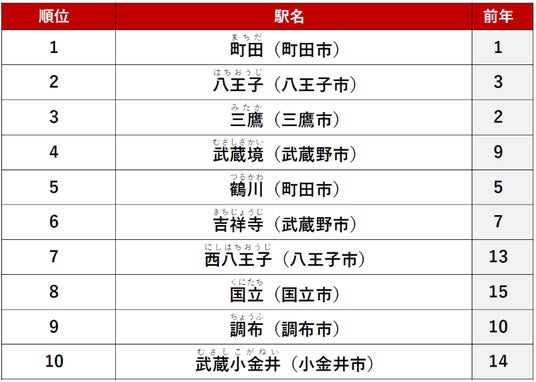 「アットホーム賃貸駅ランキング 東京都下編」 調査結果