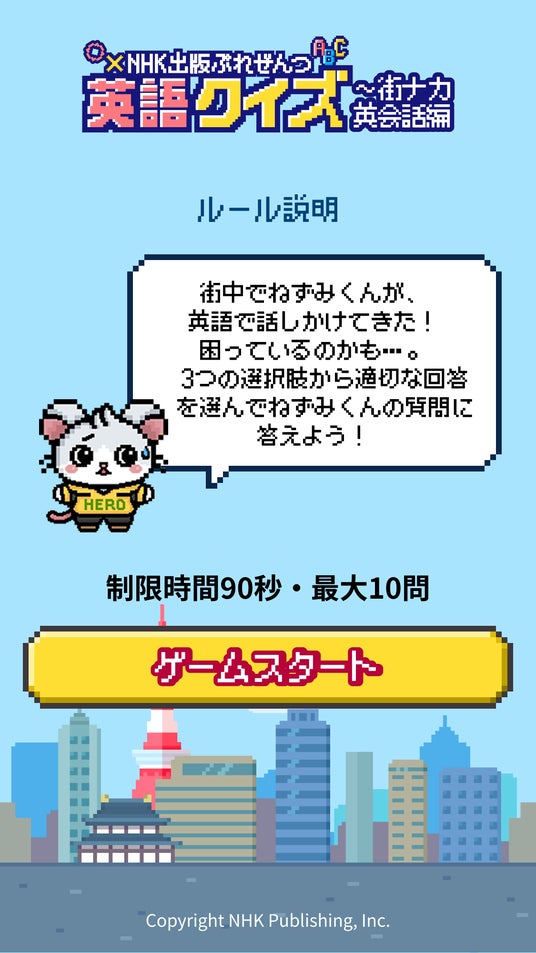 NHK出版が毎年2月に公開しているWEBコンテンツ「英語力測定テスト」は、2024年に「NHK出版ぷれぜんつ 中学英単語タイムアタック!」としてフルリニューアル。総受検回数がその前の年の3倍以上となるなど大好評を博しました。今回、それをさらにパワーアップさせたのが「英語クイズ~街ナカ英会話編」です。