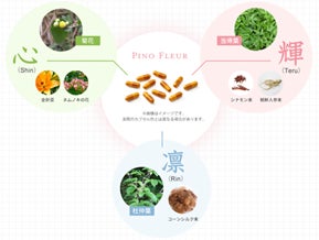「PINO FLEUR(ピノフルール)」は、古来より親しまれる松葉エキス(松葉抽出物)と植物由来の生薬を配合したサプリメントで、「気」のめぐりに着目した「心(Shin)」、「血」のめぐりに着目した「輝(Teru)」、「水」のめぐりに着目した「凛(Rin)」の3種をラインナップしております。