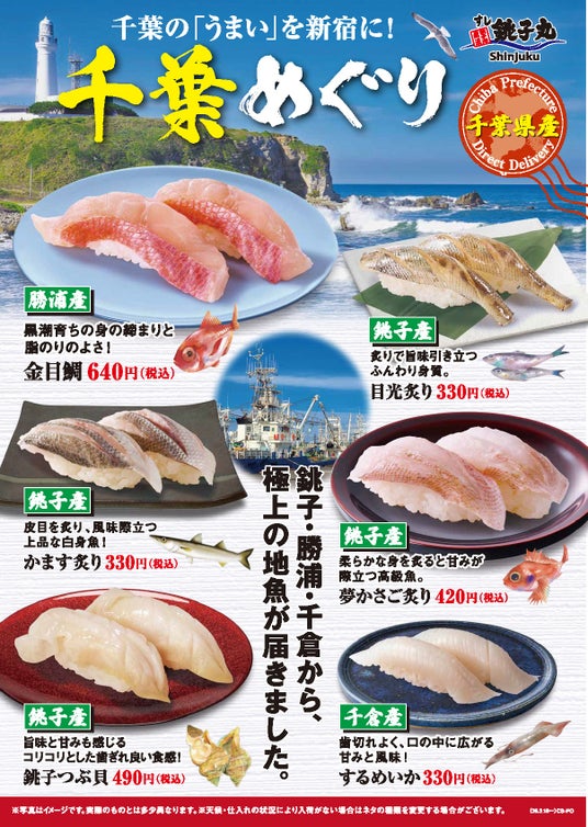 「千葉の『うまい』を新宿に!」を合言葉に、銚子丸創業の地・千葉県から届く厳選された魚介類を集結させた「千葉めぐり」を開催いたします。銚子、勝浦、千倉など、千葉の海が育んだ圧倒的な鮮度と極上の旨み。産地直送だからこそ叶う本物の味わいを、ぜひこの機会にご堪能ください。 ※仕入れ状況により入荷がない場合がございます。予めご了承ください。