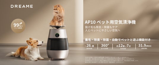 高速デジタルモーターによる高吸引力を強みとするスマート家電メーカー、Dreame Technology Japan株式会社(本社:東京都中央区)は、日本市場向けにペット環境に特化した空気清浄機「Dreame AP10 ペット用空気清浄機(以下、Dreame AP10)」を発表いたします。