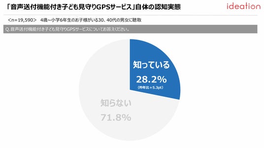音声送付機能付き子ども見守りGPSサービス自体の認知率を見ると、「知っている」が28.2%と、前回調査結果の22.9%から5.3ポイント向上している。