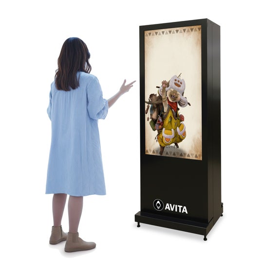 会場では、AVITA株式会社が提供するAIインタラクティブサイネージ「てぇてぇシャッター」で、オトモアイルーとのインタラクティブな体験をお楽しみいただけます。来場者の動きに合わせて表情やポーズを変えたり声を出したりと、まるでその場にいるかのようなリアルな反応を見せます。