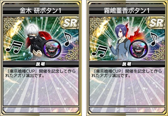 「金木 研ボタン1」「霧嶋董香ボタン1」など、全6種のアガリボタンが登場します。