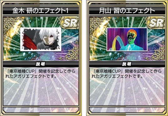 進化型SPキャラ(UR)「金木 研」「霧嶋董香」といった『東京喰種』シリーズに登場するキャラクターをはじめ、『東京喰種』をイメージしたアガリ演出、卓背景、EX枠、EX背景などコラボアイテム全70種が期間限定で登場します。