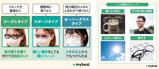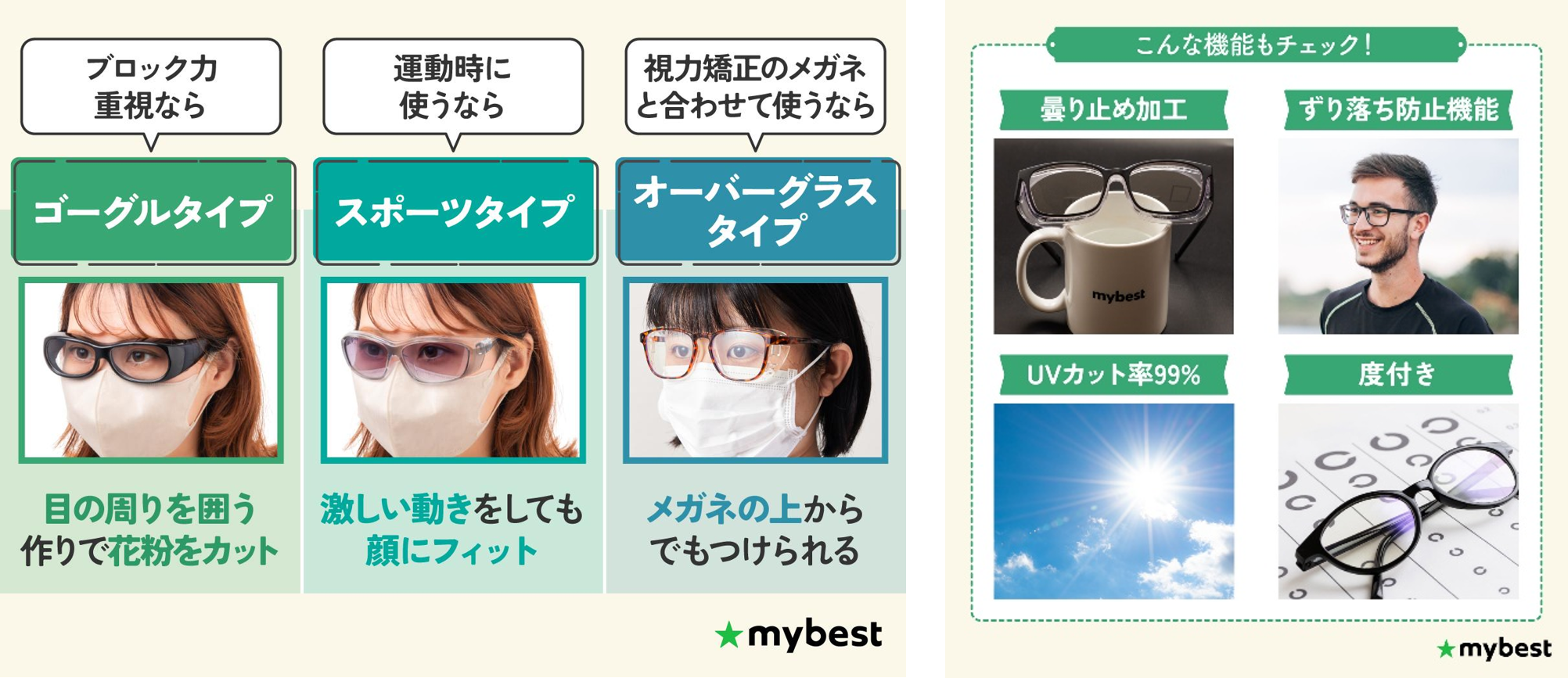 マイベストでは花粉対策メガネの「花粉カット効果の高さ」「曇りにくさ」「装着時の違和感のなさ」の3点を検証し、選び方のポイントや花粉対策メガネのおすすめランキングを作成しました。