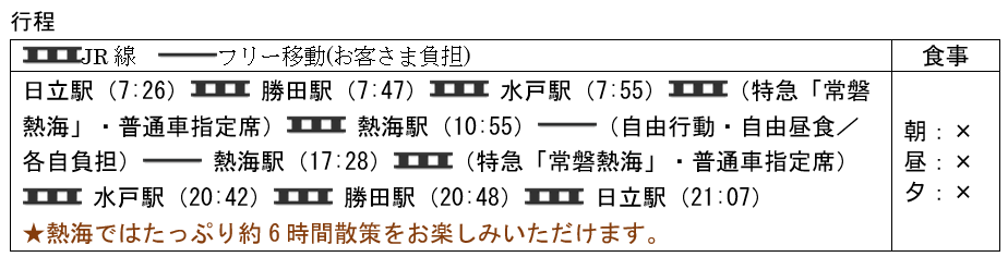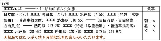 商品名:~潮風と湯けむりに誘われて~直通臨時特急「常磐熱海」で行く熱海フリープラン