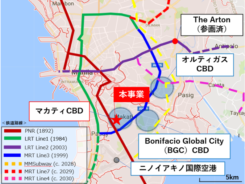 本事業はマニラ首都圏の中心部に位置し、フィリピン国内最大のビジネス中心街である「マカティCentral Business District (以下、「マカティCBD」)」(マニラ首都圏マカティ市)内に所在します。マカティCBD内の住宅供給量は極めて限られており、高い立地希少性を持つ事業です。
