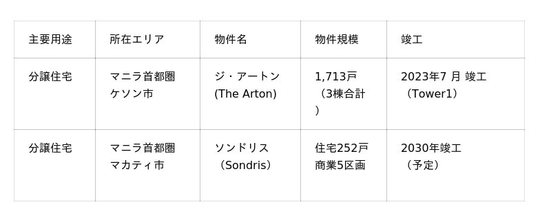 ・フィリピンの上場デベロッパーであるArthaland Corporationとの初共同事業