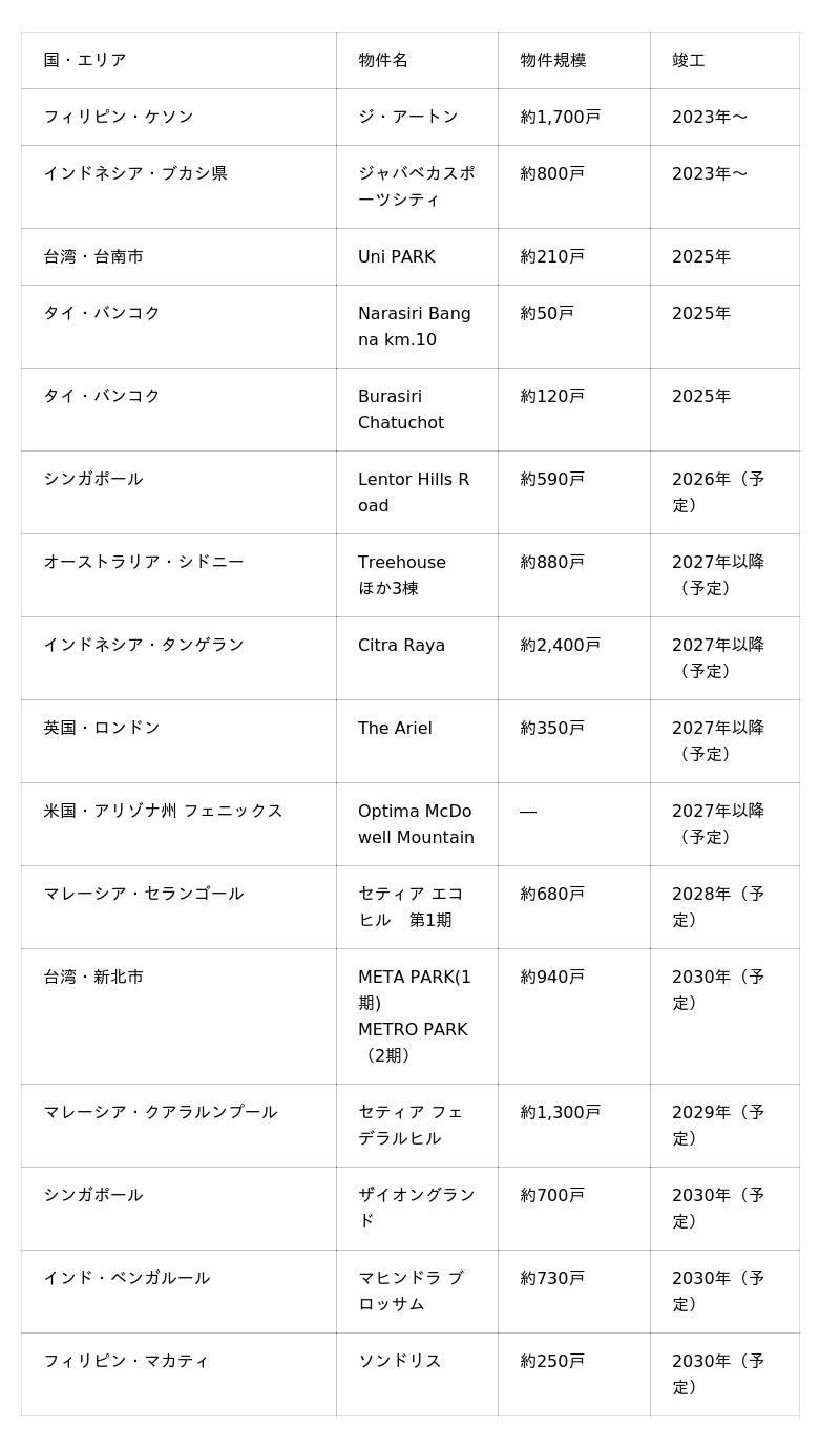 ≪海外における主な分譲住宅事業≫※2026年2月時点
