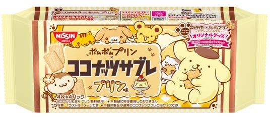 「ココナッツサブレ」は、1965年の誕生以来、原材料や製法をほとんど変えることなく、発売当時から受け継ぐ“サクサクッ、あきないおいしさ”でご愛顧いただき、2025年7月2日に発売60周年を迎えました。今回、親子のおやつ時間に「ココナッツサブレ」をもっと楽しんでいただきたいとの思いから、幅広い層に愛され、2026年に30周年を迎えた株式会社サンリオの「ポムポムプリン」とコラボレーションした商品を期間限定で発売します。「ポムポムプリン」の大好物である“プリン”をイメージした「ココナッツサブレ プリン味」は、カスタード風味の生地にカラメルパウダーを練り込み、ふんわりとした甘さとコクのある味わいに仕上げました。パッケージには、特別に描き下ろした「ポムポムプリンとお友だち」をあしらいました。また、小分け包装では、「サブレでひとやすみ」をテーマにしたオリジナルストーリー (全10種類) を展開します。さらに、日清食品グループ オンラインストアでは「ココナッツサブレ×ポムポムプリン コラボポーチセット」を数量限定で発売します。「ココナッツサブレ プリン味」と「ココナッツサブレ」の定番商品 (5種類×2個、1個16枚入り) に、「ココナッツサブレ×ポムポムプリン コラボポーチ」を組み合わせました。ポーチは、「ポムポムプリン」のチャームポイントである“おしり”が飛び出したかわいらしいデザインで、このコラボでしか手に入らない限定アイテムです。