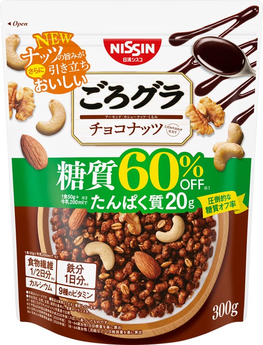 日清シスコ株式会社 (社長:山田 道明) は、「ごろグラ 糖質50%オフ 贅沢果実」「ごろグラ 糖質60%オフ チョコナッツ」「ごろグラ 糖質60%オフ きなこ大豆」を3月2日(月)に全国でリニューアル発売します。