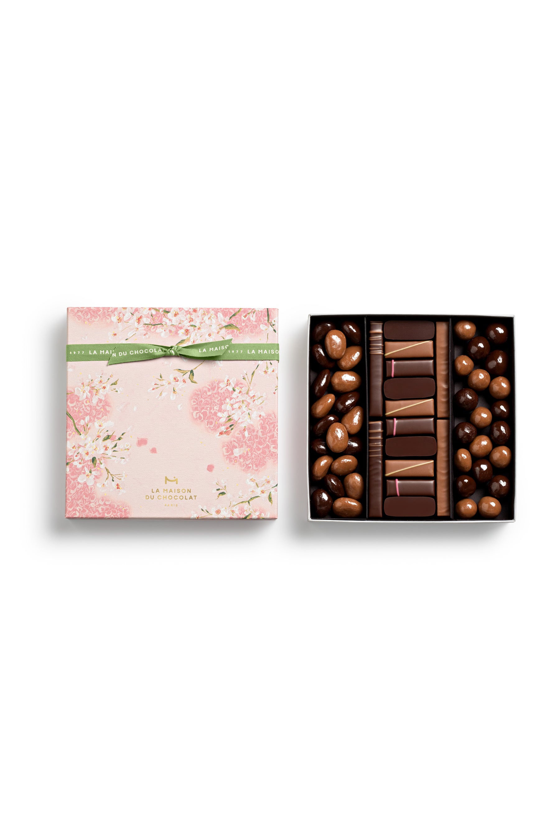 春限定のボンボン・ドゥ・ショコラ2種と、ラ・メゾン・デュ・ショコラの定番レシピを組み合わせた、バランスの取れたアソート。ホワイトデーのお礼や春のギフトとしてはもちろん、自分へのご褒美としてお選びいただけるセレクションです。