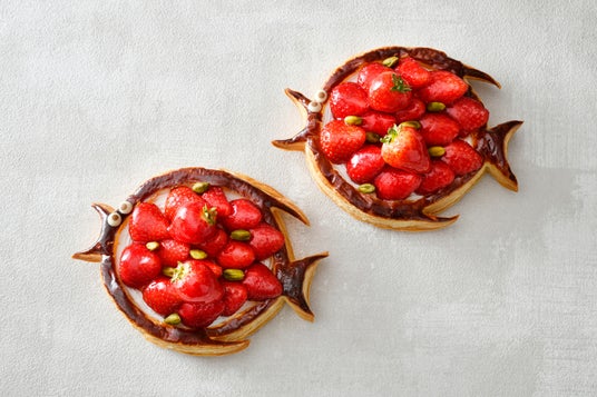 フランスでは、エイプリルフールのことを“Poisson d’avril(4月の魚)”と呼び、魚をモチーフにしたお菓子を食べる伝統的な習慣があります。この時期になると、街中のパティスリーやショコラティーには魚のチョコレートやケーキ、パイが並び、春の訪れを華やかに祝います。そんなフランスのユニークな習慣にちなんだ、おどけた表情の魚に思わず笑顔がこぼれる「ポワソンダブリル」を、今年は2種類ご用意しました。旬のフルーツである真っ赤な苺をたっぷり飾ったバージョンと、様々なフルーツをふんだんに飾った彩り豊かなバージョンです。春の訪れを祝うティータイムのおともにいかがでしょうか。