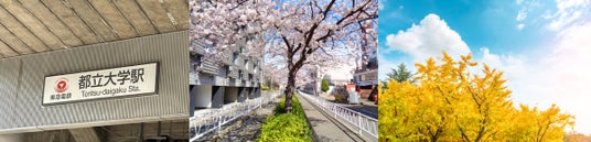 本物件は、東急東横線「都立大学」駅から徒歩4分、都心へのアクセスに優れた好立地に位置しています。駅周辺には商店街が広がり、飲食店やスーパーなど生活利便性に優れた環境が整う一方で、物件周辺はサクラ並木やイチョウ並木が連なり、都会でありながらも季節を感じられる豊かな環境となっています。