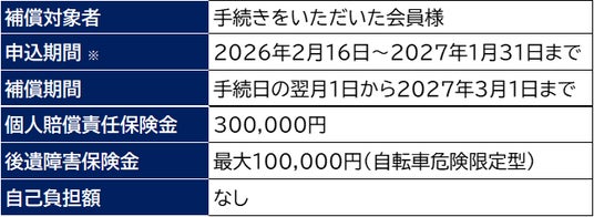 ※本サービスは毎年お申込みが必要です。2027年2月以降の保険内容は変更となる場合があります。