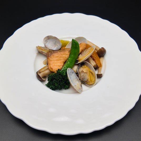 浅利の旨味と鮮魚のふっくらとした食感が溶け合う、春の滋味を感じる一皿。