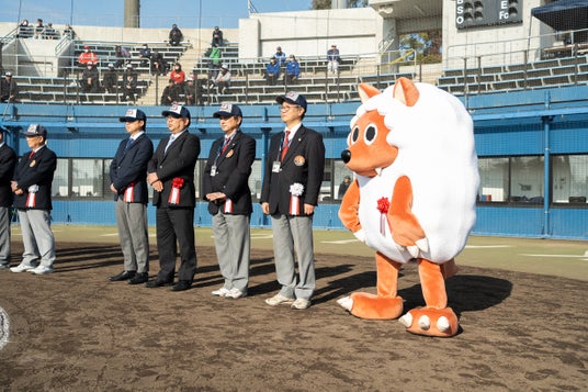 公益財団法人日本少年野球連盟ボーイズリーグ主催の少年硬式野球大会が、2月15日(日)に三重県四日市市の霞ケ浦第3野球場と愛知県新城市の有海緑地公園野球場で開幕!始球式にはメ~テレ(名古屋テレビ放送)のマスコットキャラクターであるウルフィが登場しました。