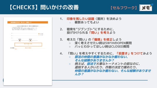 今回の講義では、この“曖昧さ”をデータで置き換えることをテーマとし、話し方・論理構 造・問いかけ技法などを客観指標として提示しました。