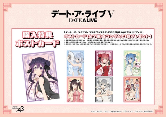 『デート・ア・ライブV』コラボグッズを2,200円(税込)お買い上げごとに、ポストカード(全7種)をランダムで1枚、プレゼントします!