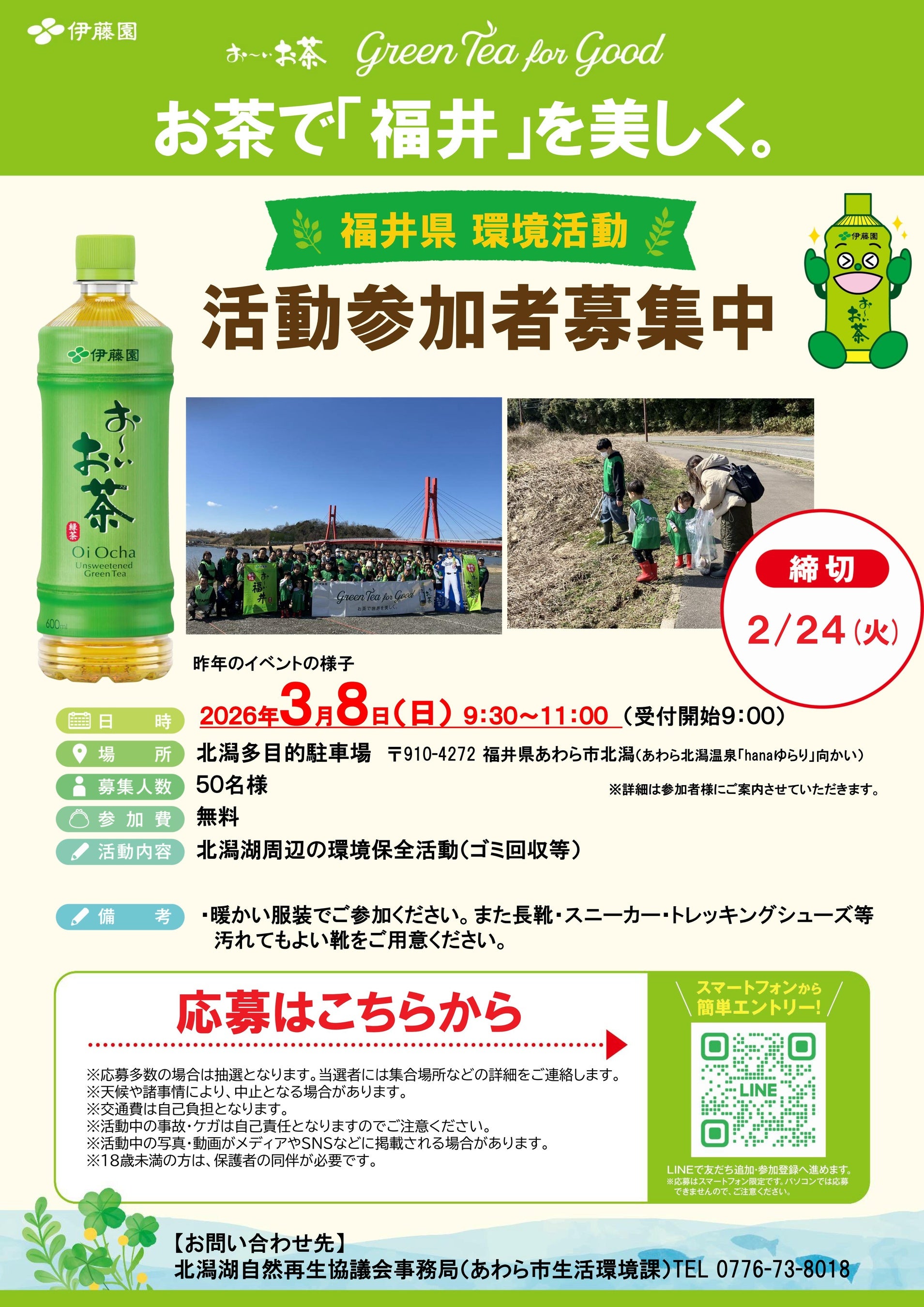 ご参加いただける人は、2月24 日(火)までに、伊藤園の公式LINE、または電話(0776-73-8018)からのお申し込みが必要です。伊藤園の公式LINE