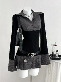 商品名:Elamini シャツレイヤード風 ブラックミニワンピース