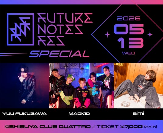 そんなMADKIDが5月13日に開催する主催ライブ「Future Notes SPECIAL」のゲストとしてBimiが出演する事が明らかとなった。同公演には、福澤侑がゲスト出演する事もすでにアナウンスされている。
