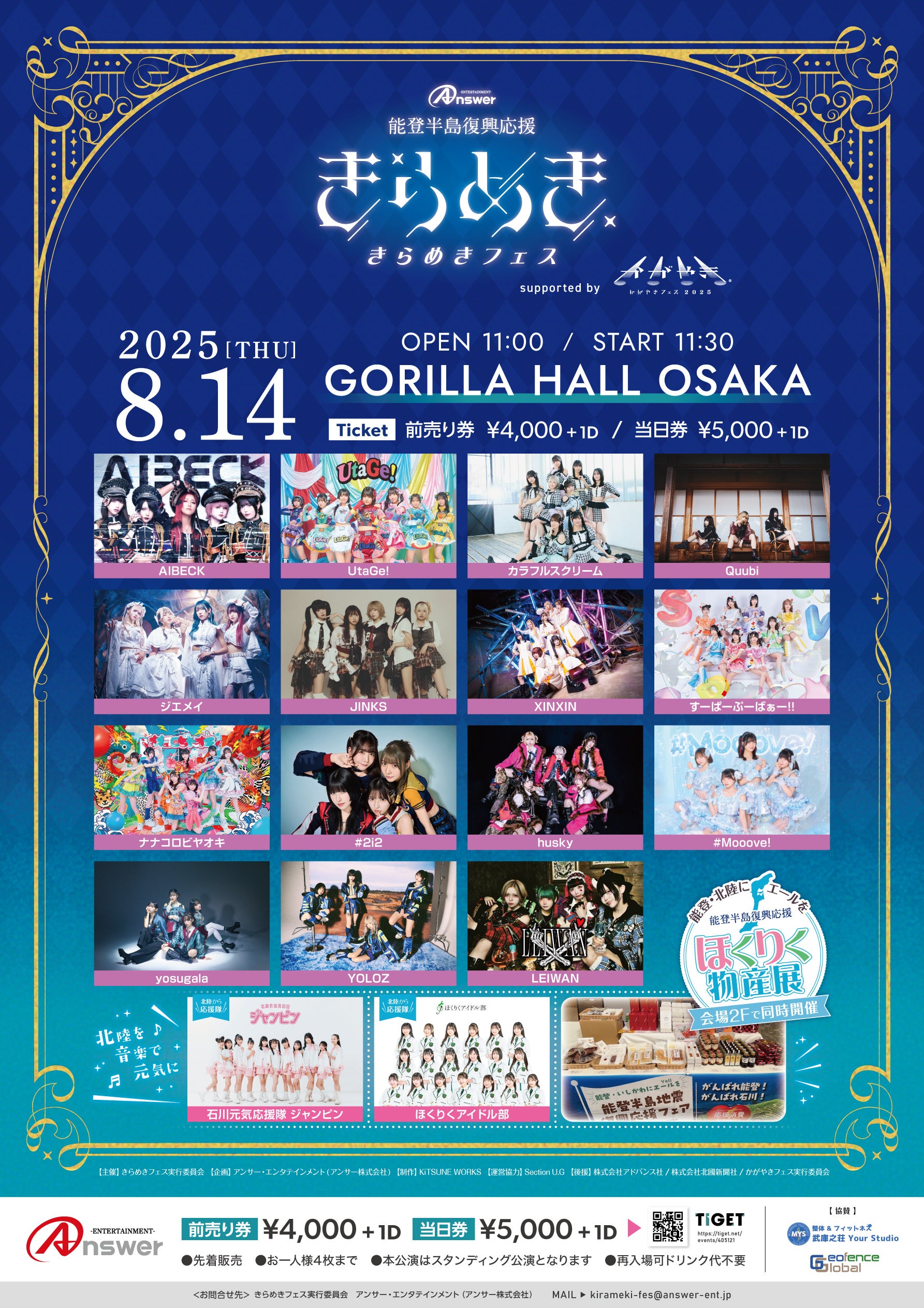 「北陸を"音楽"で元気に!」北陸発信のスターを育成するプロジェクト『ほくりくアイドル部』の運営と、北陸最大規模のアイドルフェス「かがやきフェス」を主催するアンサー・エンタテインメント(アンサー株式会社、代表取締役社長 有村勇志)がGORILLA HALL OSAKA(大阪市住之江区)にて、関西と北陸を結ぶアイドルフェスとして2025年8月に初開催したアイドルフェス。