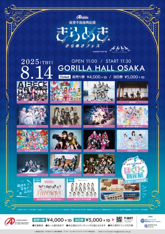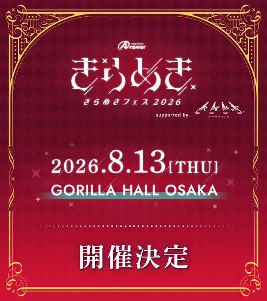 「北陸を"音楽"で元気に!」北陸発信のスターを育成するプロジェクト『ほくりくアイドル部』を運営するアンサー・エンタテインメント(アンサー株式会社、代表取締役社長 有村勇志)は、2026年8月13日(木)、大阪住之江のGORILLA HALL OSAKAにて『きらめきフェス2026 supported by かがやきフェス』を開催することを発表いたします。