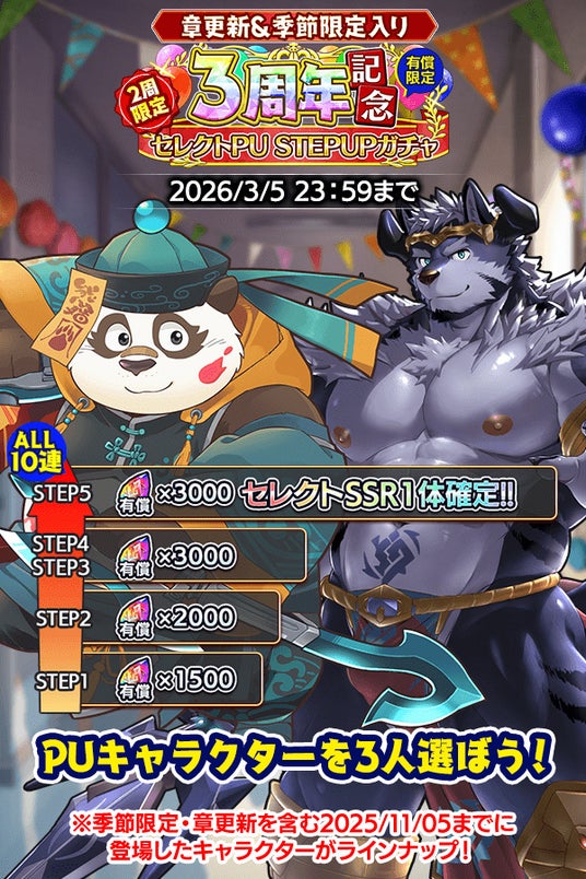 ・3周年記念 章更新&季節限定入りセレクトPU STEPUPガチャ
