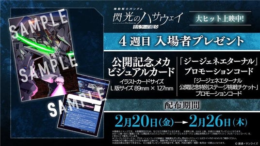 ※お一人様一回のご鑑賞につき、「公開記念メカビジュアルカード」&「ジージェネエターナル 公開記念特別ステージ挑戦チケット」プロモーションコードを2枚セットで配布いたします。