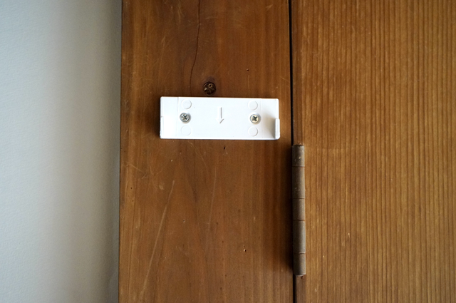 取り付け方法は、取付プレートを壁面などにネジで固定する方法と両面テープで貼り付ける方法、スチールにマグネットで取り付ける方法と3種類あるので、場所や状況によって選ぶことが可能。筆者は廊下のドア横に設置したかったので、取付プレートを柱にネジで固定しました。