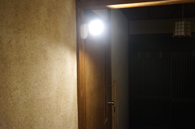 暗くなったので、人感センサーが人を感知して点灯。予想以上に明るく、足元がしっかり見えるので、夜中にトイレに起きたときも安心です。