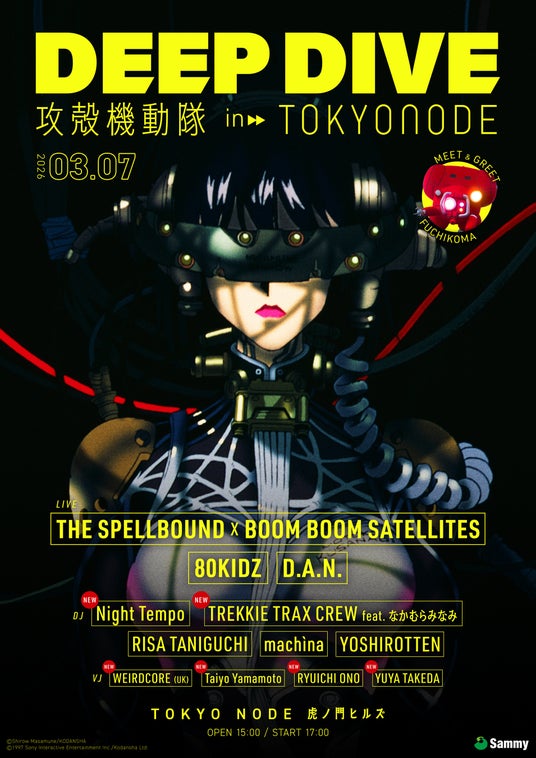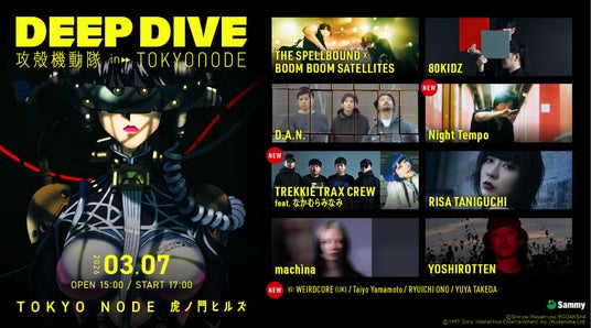 攻殻機動隊展 Ghost and the Shell 製作委員会(株式会社講談社、森ビル株式会社、KDDI株式会社、株式会社プロダクション・アイジー、株式会社パルコ、株式会社バンダイナムコフィルムワークス)は、2026年1月30日(金)から4月5日(日)まで、虎ノ門ヒルズ ステーションタワー45Fの情報発信拠点「TOKYO NODE(東京ノード)」内 TOKYO NODE GALLERY にて開催する『攻殻機動隊展 Ghost and the Shell』内で開催されます、作品公式の音楽イベント『DEEP DIVE / 攻殻機動隊 in TOKYO NODE』の情報解禁第二弾として、出演アーティスト第2弾情報を解禁いたしました。