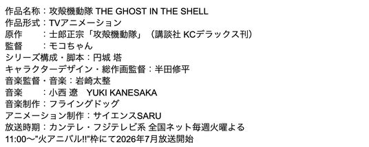 (C)2026 Shirow Masamune/KODANSHA/THE GHOST IN THE SHELL COMMITTEE