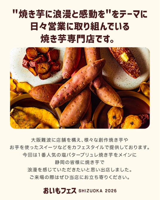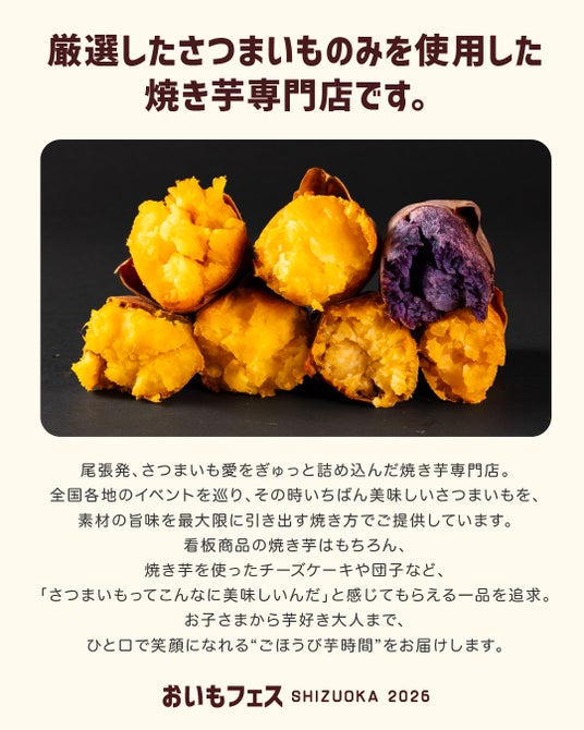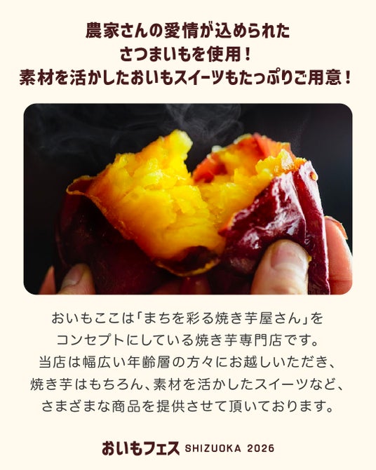 静岡市にて、全国各地の焼き芋専門店が大集結「おいもフェス SHIZUOKA 2026 & しぞ~かEXPO」2026年2月27日(金)から3月1日(日)の3日間、東静岡・グランシップ広場にて開催!
