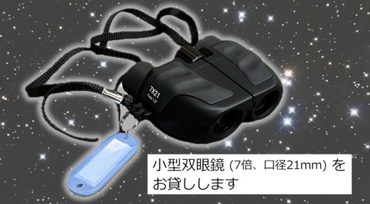 (ご自身の双眼鏡を使用することもできますが、三脚を持ち込むことはできませんので必ず手持ちできる双眼鏡をお持ちください。)