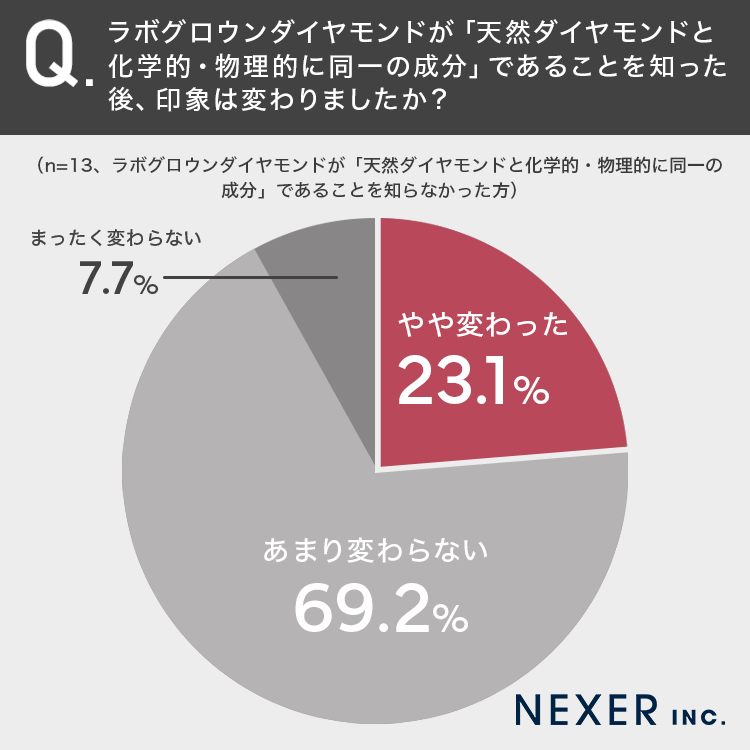 質問4:ラボグロウンダイヤモンドが「天然ダイヤモンドと化学的・物理的に同一の成分」であることを知った後、印象は変わりましたか?