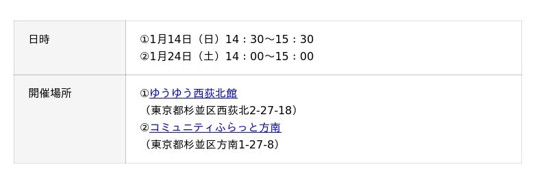 食育活動は、12月14日(日)はゆうゆう西荻北館、1月24日(土)はコミュニティふらっと方南(どちらも東京都杉並区)にて実施し、お子様からご年配の方まで、計34名(12月:16名、1月:18名)の方にご参加いただきました。