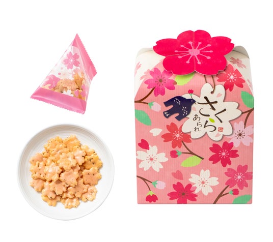 春の風物詩“桜”をモチーフにした、淡いピンクの小粒あられ。